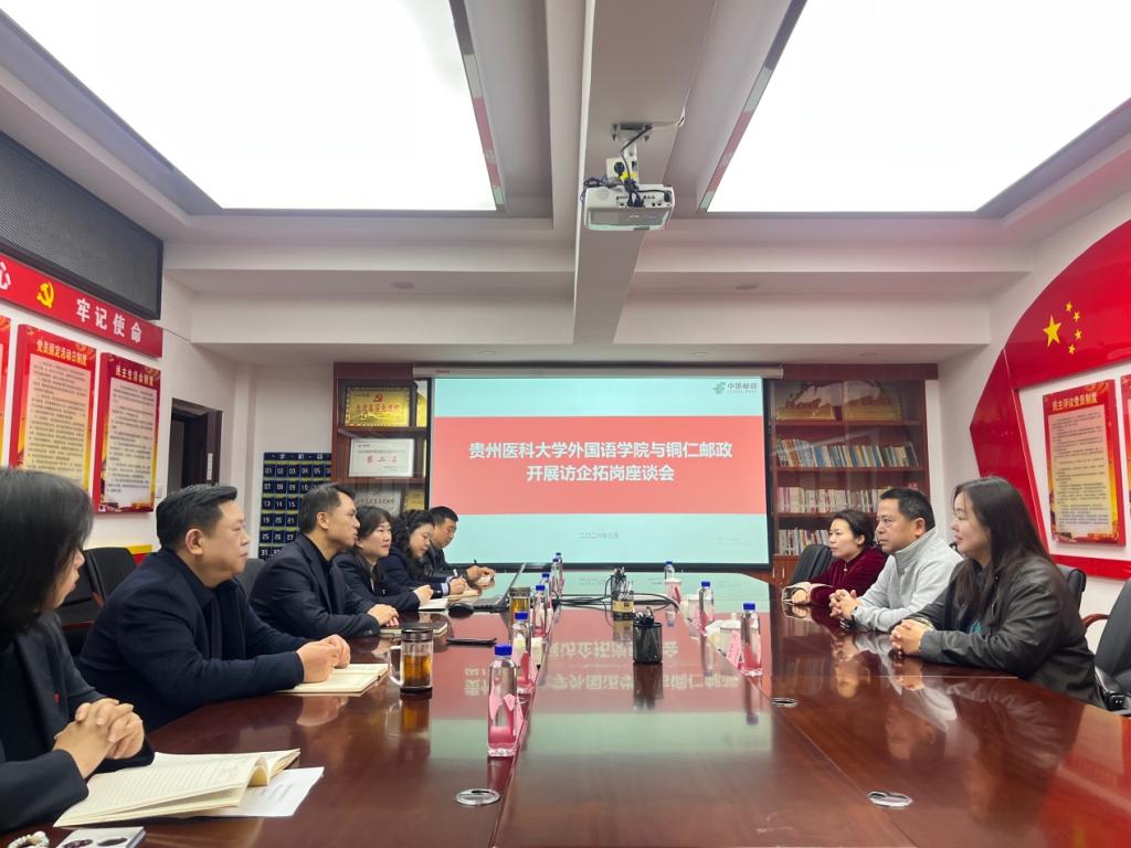 在中国邮政铜仁市分公司、铜仁市万山区分公司,双方围绕人才需求、岗位拓展、校企协同等议题进行座谈交流。付启宏介绍了我校的历史沿革和学校发展等情况,张贤介绍了学院人才培养、学生就业等。中国邮政铜仁市分公司党委书记、总经理周健对来访一行表示热烈欢迎,副总杨菲介绍了中国邮政集团及铜仁分公司的基本情况、业务布局及发展现状。双方就人才培养探讨校企协同育人的可行方向。
