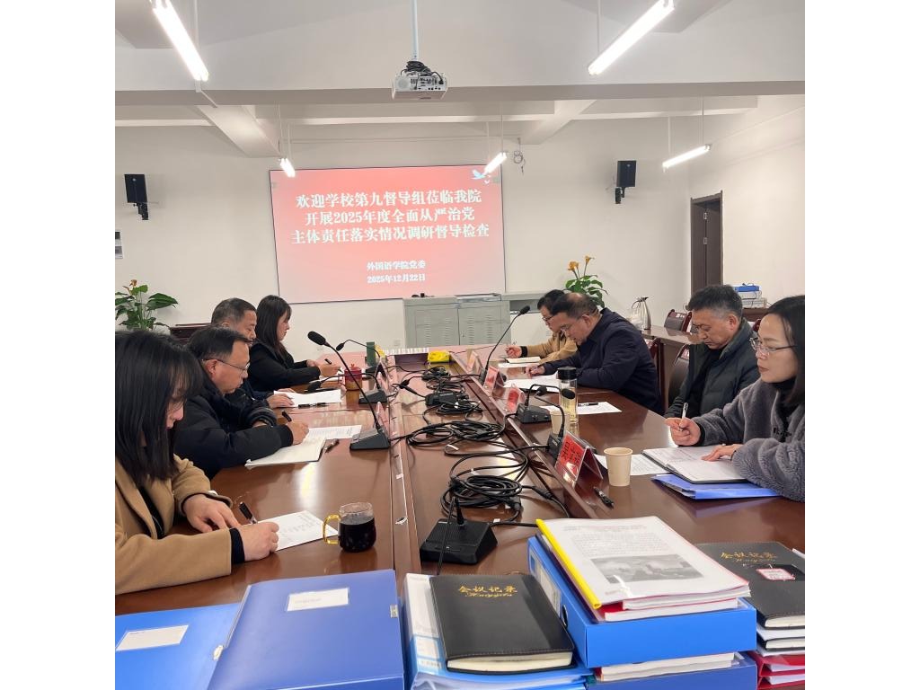 12月22日,由校党委常委、副校长禹文峰、设备管理处处长刘涛、法医学院纪委书记王得颖、设备管理处综合科科长吴文琪组成的第九调研督导检查组,到外国语学院开展全面从严治党主体责任落实情况调研督导检查。学院党政领导班子成员、党委委员及综合办副主任参加。